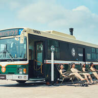 センターの目印であるラッコのマークのバスは、まさに天国へのお迎え。
