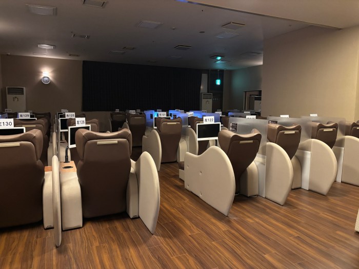 まだお金が残っていたので、ダメ押しで15分の300円の無重力マッサージチェアで全身のコリをほぐした。