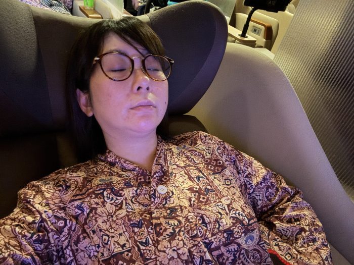 ここは男女別エリアになっているうえに、シートが指定席になってるから快適〜。