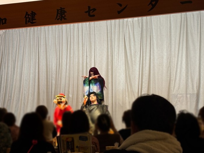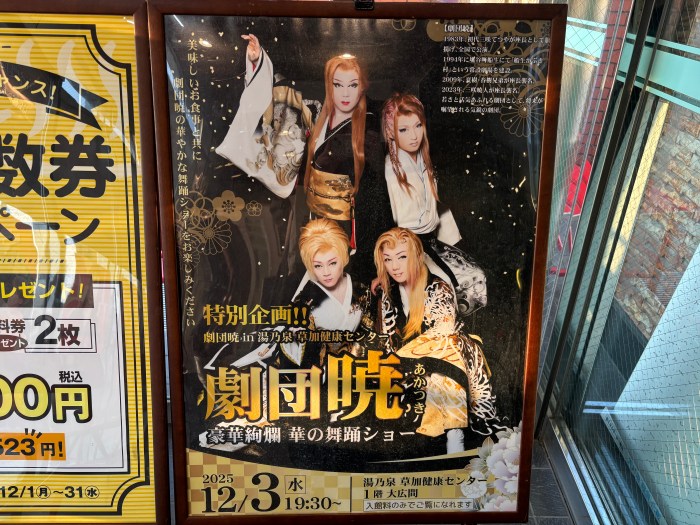 この日は大衆演劇の「劇団暁」の舞踊ショーが無料で見られる日だった。