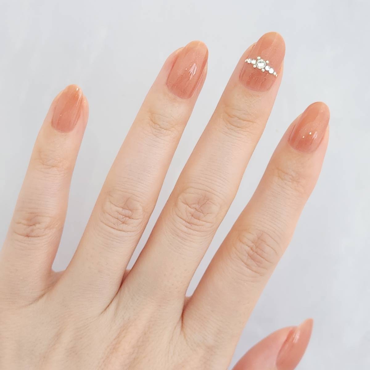 ヌーディーカラーにネイルストーンがキラッと光るので、1ヶ所だけのアクセントでも存在感抜群!
