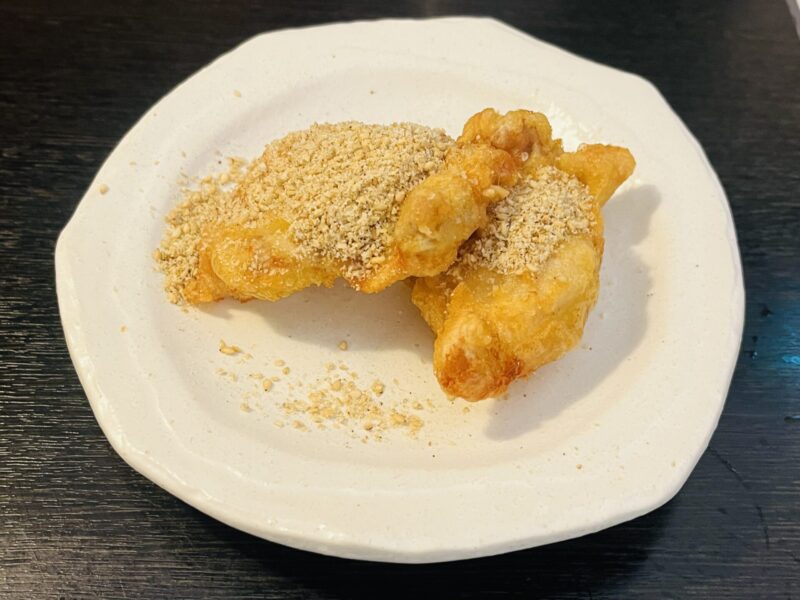 すりごま塩でいただくさくさくの唐揚げ、激うまです。