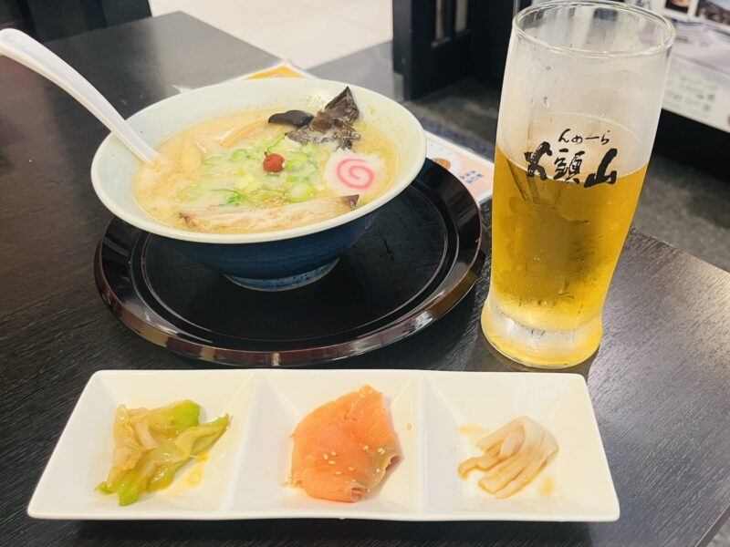ドリンクは生ビール、ラーメンは山頭火の代名詞でもある「しお」をオーダー。