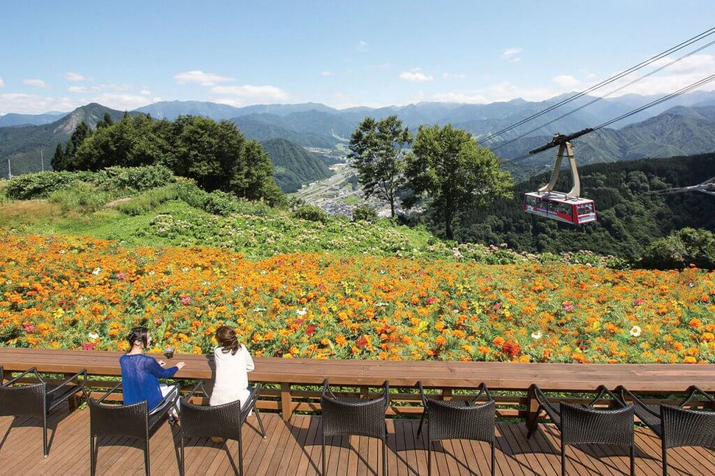 世界最大級166人乗りのロープウエイ。標高1,000メートルの高原まで上る途中、眼下には越後三山をはじめ、巻機山、飯士山、湯沢の街並みを一望できます。山頂には季節の花々が咲き誇る高山植物園「アルプの里」があり、さらにはボブスレー、ジップラインアドベンチャーといった充実したアクティビティーも楽しめます。