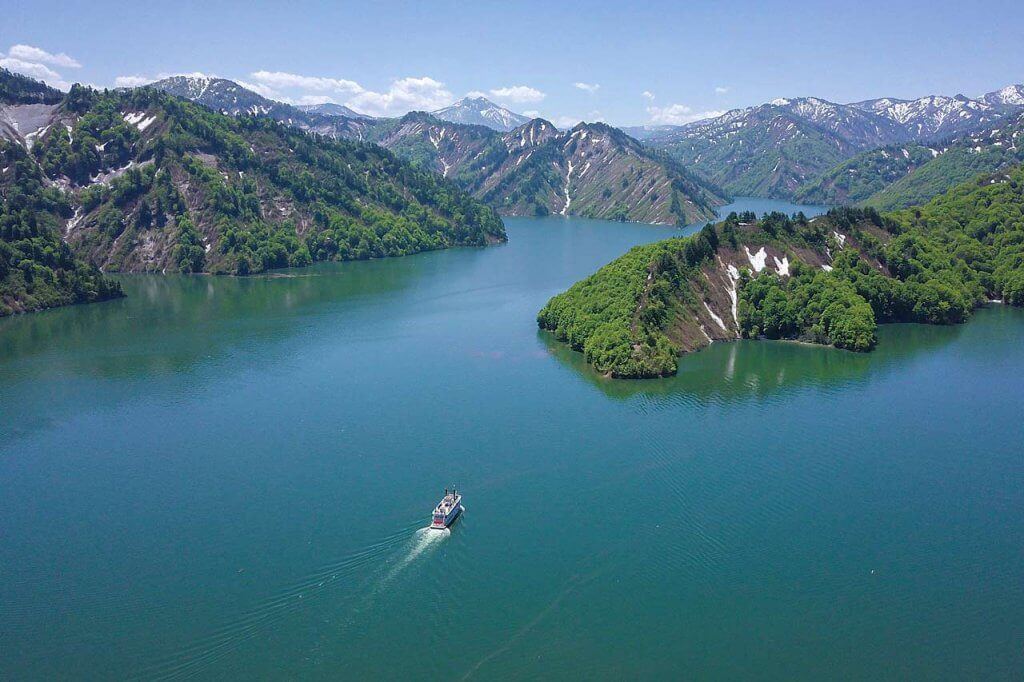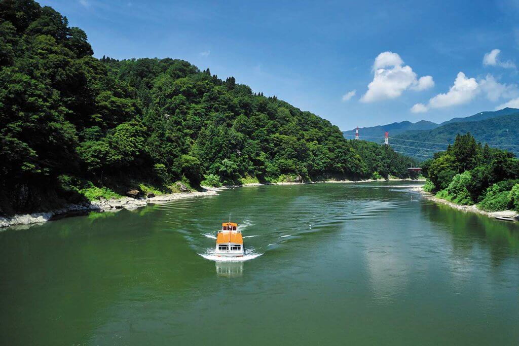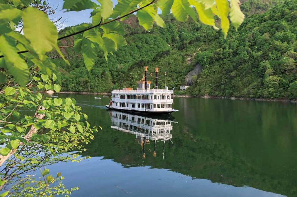 日本有数の広さを誇る人造湖・奥只見湖。湖上から雄大な自然を眺められる遊覧船は大小合わせて全部で4種類あり、3つのコースで楽しめます。約40分間運航する周遊コースでは、奥只見湖の見どころを余すことなく巡ります。夏休み期間は、船長の仕事を学べる特別企画「こども船長」を開催。詳細はホームページで確認を。
