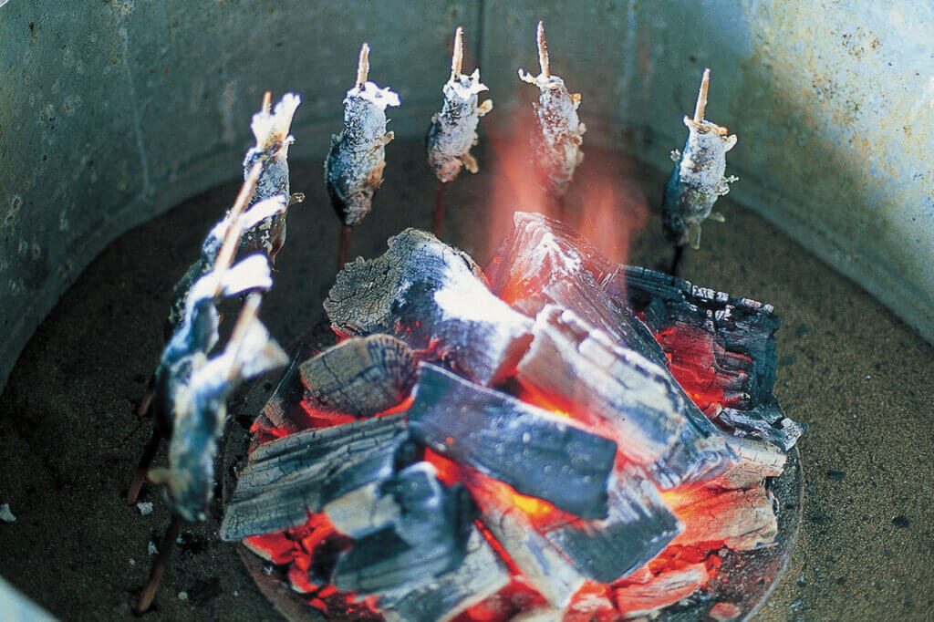 釣った魚は持ち帰ることも、施設内で塩焼きにすることもでき、料金は魚の重さによって加算されます。その場で調理する炭火焼きは、皮はパリッと香ばしく、身はホクホク。