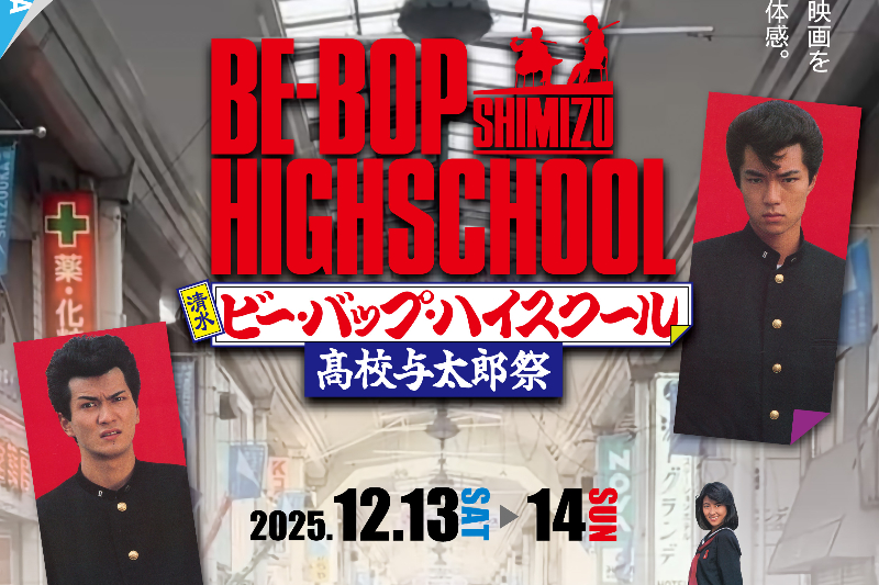 映画「ビー・バップ・ハイスクール」公開40周年を記念し、ロケ地の清水駅前銀座商店街で開催されます。仲村トオルさん、古川勉さんら出演者が登場。ツッパリコスプレコンテストや昭和歌謡ライブなど、世代を超えて「昭和の熱気」を楽しめる企画が満載です。