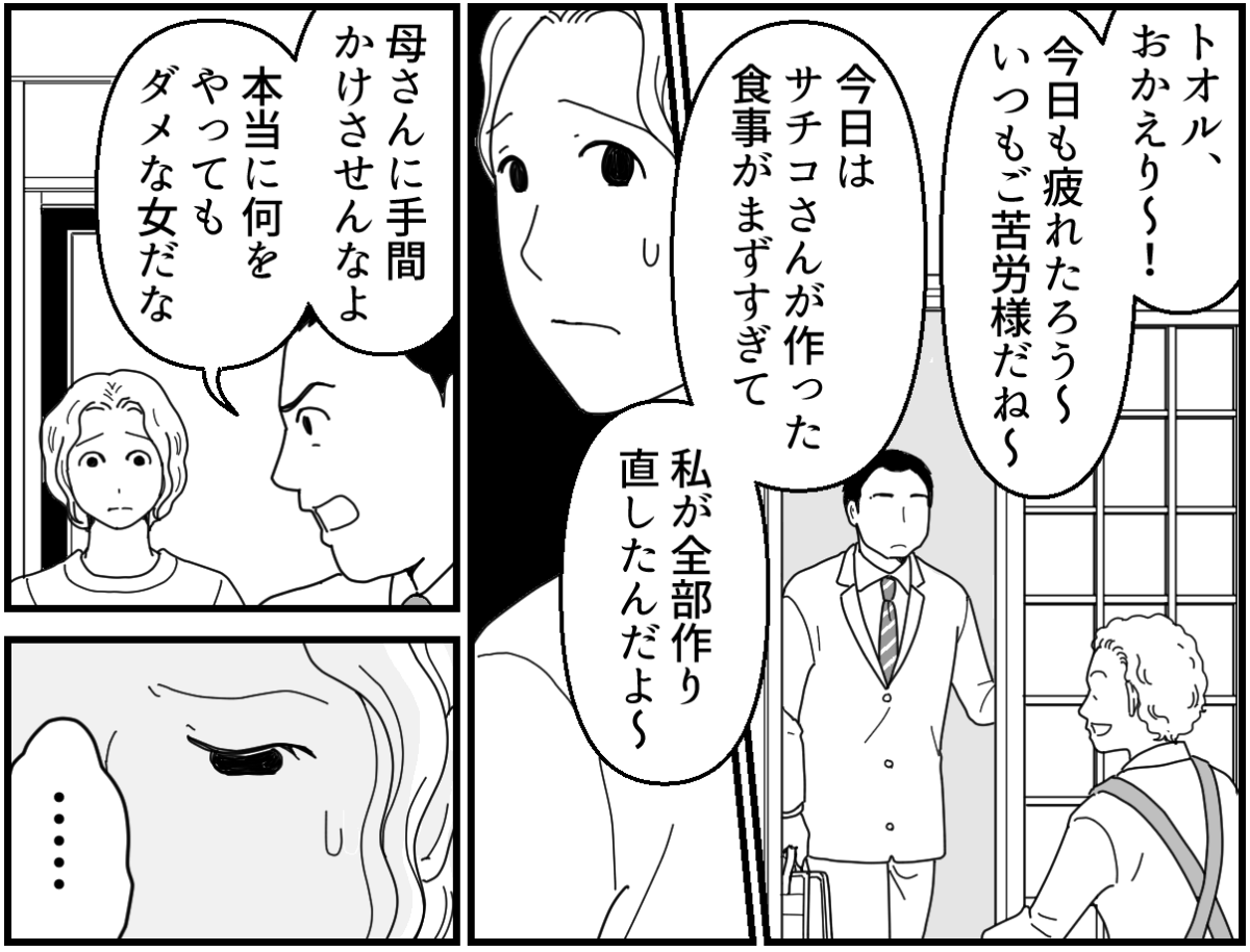 「お義母さんの人生は、お義母さんだけのものですよ?」力強く語ってくれるリョウコさん。彼女はとても信頼できる女性です。レイジが結婚して戻ってきてくれたことで、味方が増えたようで心強く感じていました。しかし、そんなある日……。