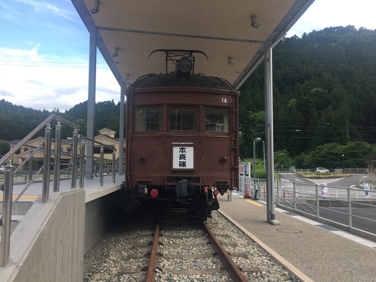 屋外には、かつてこの地を走っていた豊橋鉄道田口線の木製車両が展示されており、中に入ることも可能。さらに、外ではもちもちの五平餅も味わえる、おすすめの道の駅です。