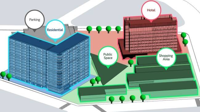 計画されている建築物は、住宅棟、オフィスエリアおよび商業施設から構成される。このうち、住宅棟が40階建て総戸数704戸、オフィスエリアは2〜6階(基準階面積約2,446m2)、商業施設は1〜2階(約4,300m2規模の飲食店舗、サービス店舗)で構成される地下1階・地上40階建て、高さ約150mとなる。