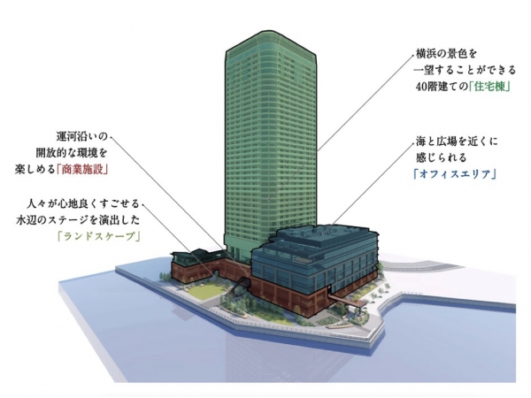 横浜北仲地区で進められている都市再生プロジェクトは、当該エリアではラスト街区となる。完成を見るにはもう少し時間を要するが、プロジェクトの特徴ともいえる総戸数704戸の分譲住宅や、低層部の商業・オフィスは横浜らしさの景観を構成できる外観を有しており、横浜観光に訪問する人の目にも止まることは間違いない。