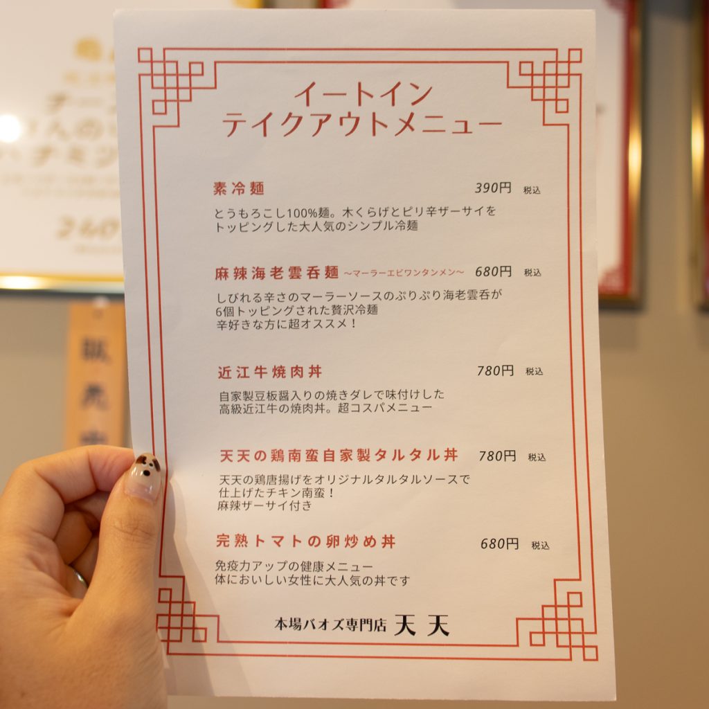 天天のバオズは上海出身のシェフが作っているそうで、本場の味が気軽に楽しめるのが魅力。皮はモチふわ!具材も本格的な味付けが楽しめます。
