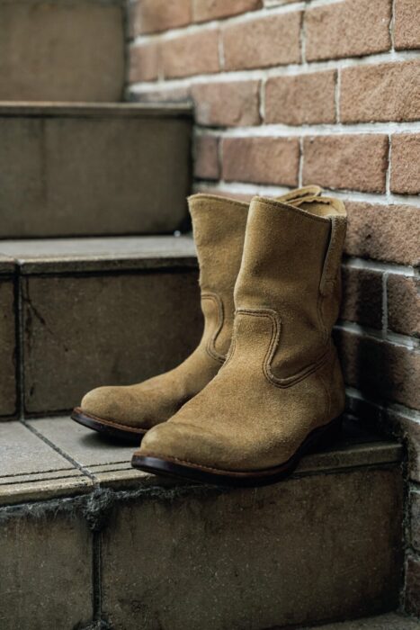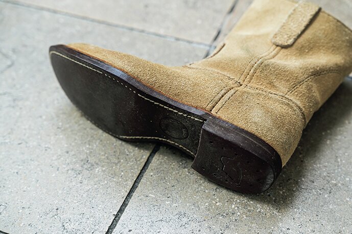 王道のペコスブーツは、トラクショントレッドソールではなく、あえてヒールタイプをチョイス。「RED WINGの店頭で売っているインソールが本当によくて、入れています。これは一押しですね」
