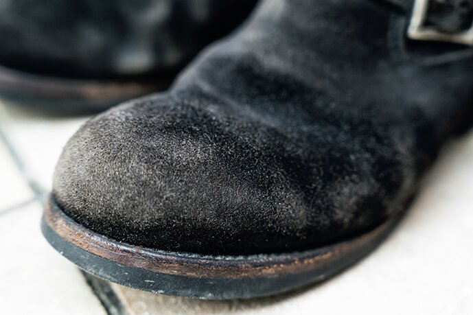 友人から譲ってもらったというBEAMS別注のブラックスウェードのエンジニア。トゥなどは茶色にエイジングされていて、なんとも良い雰囲気。「スウェードのエンジニアは合わせやすくて好き」
