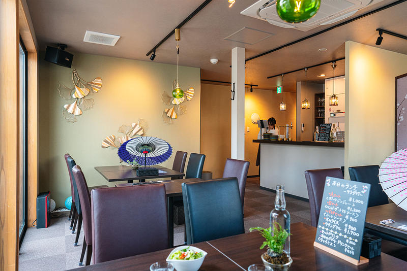 2階は掘りごたつ席とテーブル席で合計約25席。最大40名までの貸切宴会にも対応可能で、内装はほとんどスタッフの手作りという温かみのある異国情緒たっぷりの空間です。