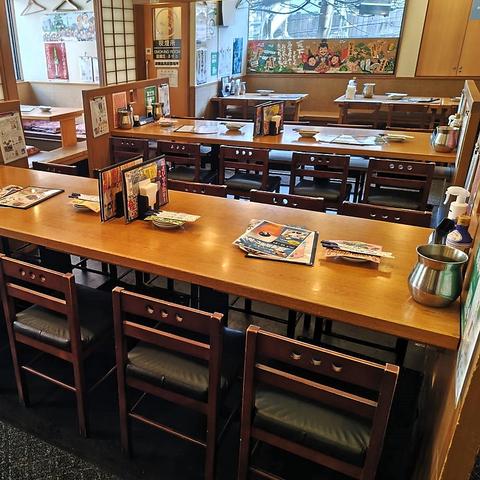 店内に入るとまず目に入るのが広いカウンター席。ほかにも個室や座敷席が揃っており、30名以上の大人数宴会にも柔軟に対応できる広さがあります。