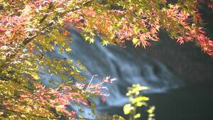 まず訪れたのは青野渓谷にある『尼ン滝』。夏場は緑が涼しげだった風景も、もみじが色づき美しい紅葉を描いています。