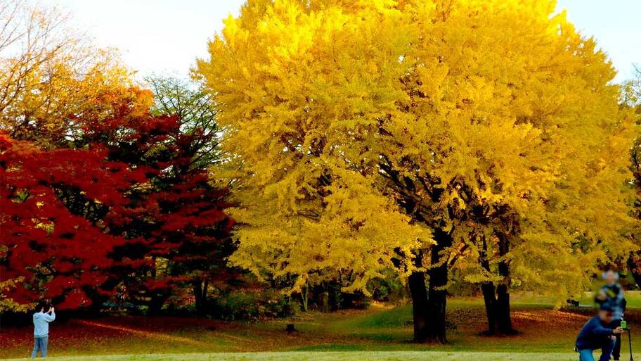 遠くからでも目を引く、大銀杏の迫力に圧倒されます。