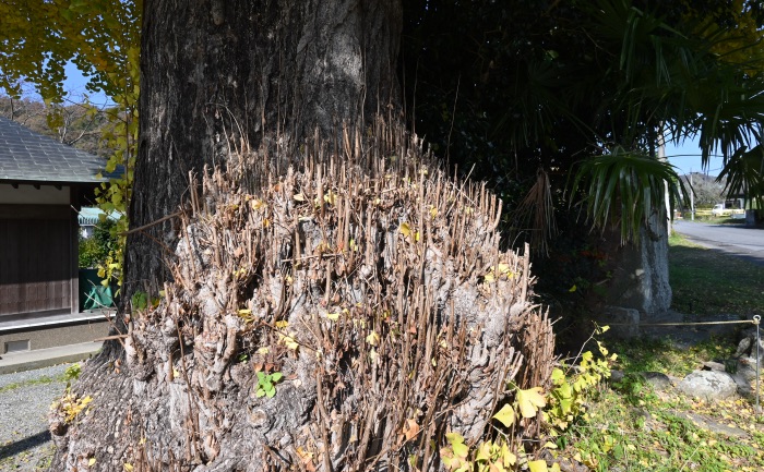 根元からは次々に新しい芽が出ている様子が伺え、この木が育ってきた年月を物語っていました。