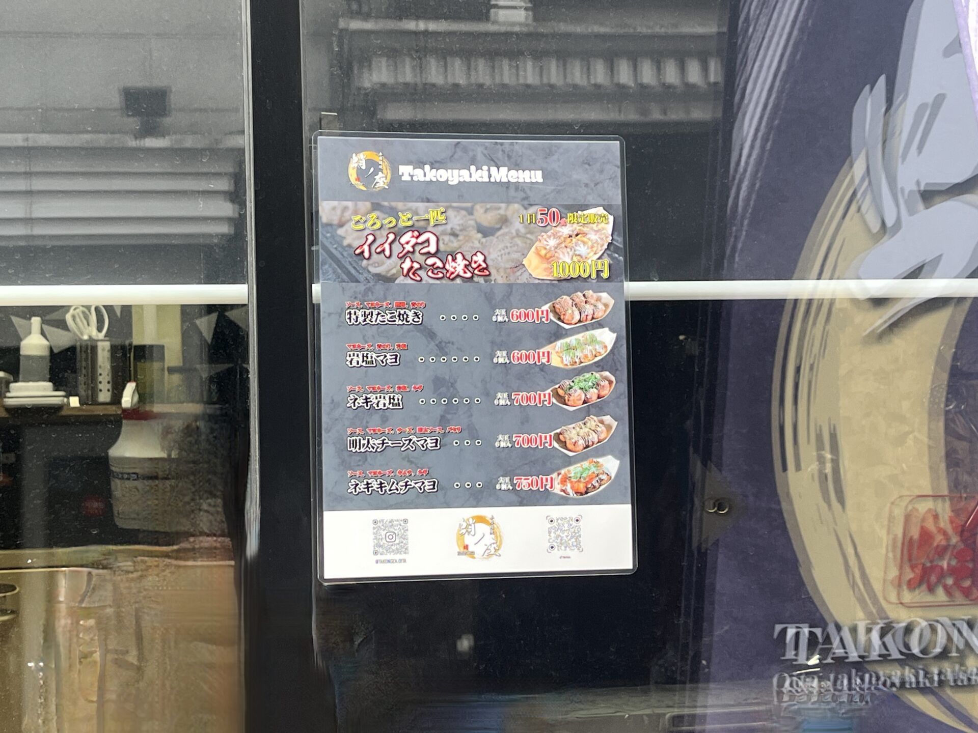 イイダコが1匹丸ごと入ったたこ焼きがおすすめとのこと。