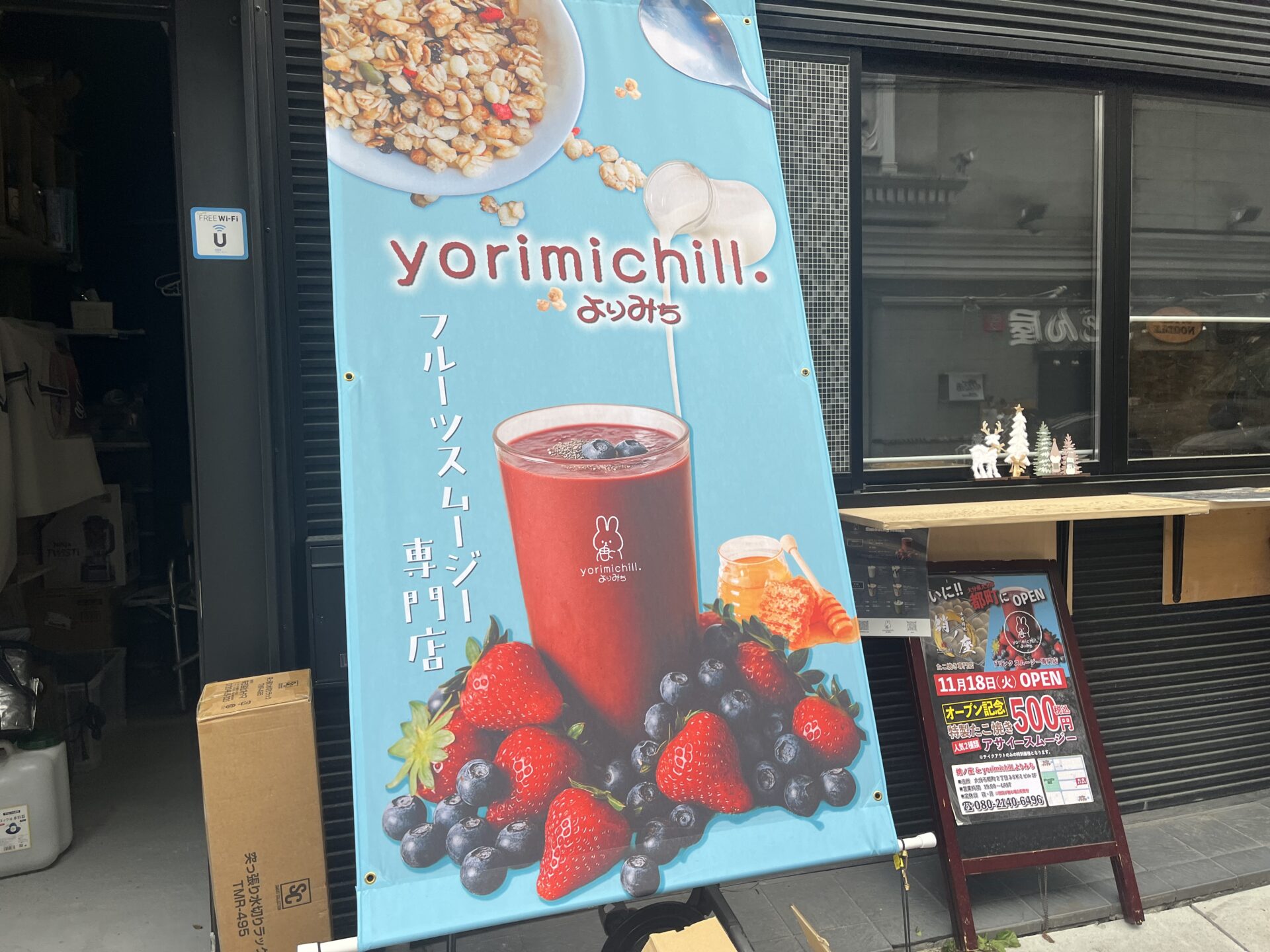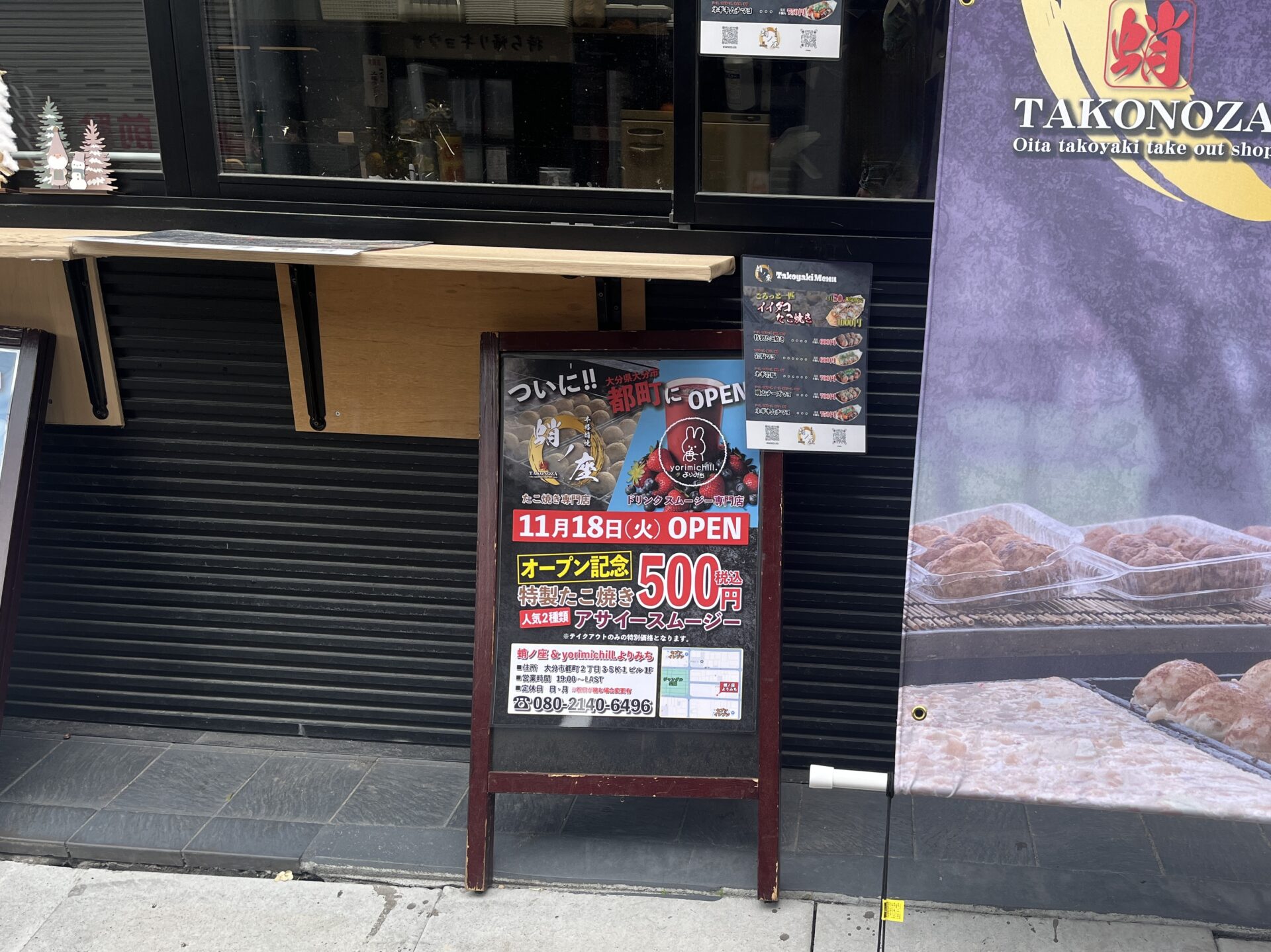 大分市都町にたこ焼き『蛸ノ座 大分都町店』とスムージー専門店『yorimichill.よりみち』ができたようです。