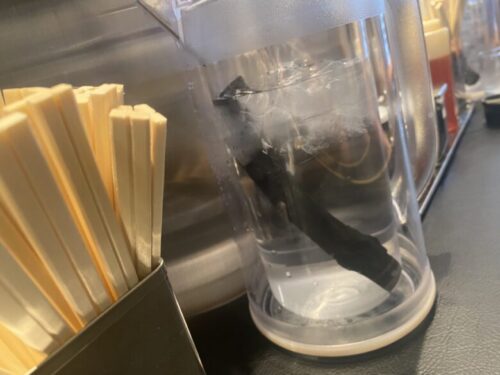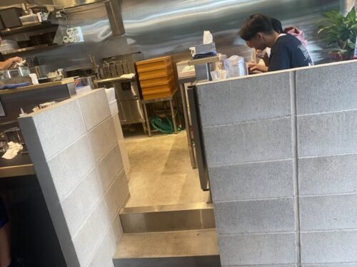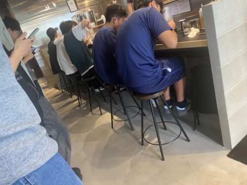 食券機で購入した後は、お客さんの後ろで席が空くのを待ちます。