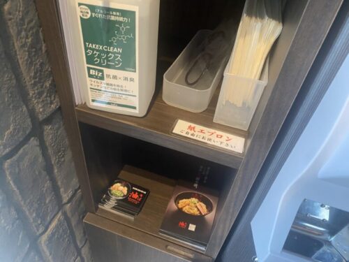食券機の隣に紙エプロンがありました。ご自由にお使い下さい。