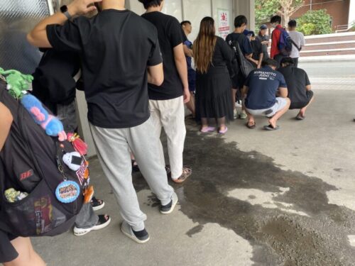 開新高等学校の真向かいということもあり、学生さんが多く並ばれています。 並んでいる間には「暑くて飲み物を買いに行かれる方はスタッフにお声掛けくださいね」と、お声かけもありました。