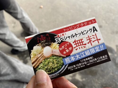 次回から使えるトッピング無料券も並んでいる間に配布。 そんなこんなで…待つことおよそ1時間半。ついに、順番がやってきました!