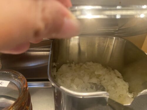 毎朝仕込んでいる、刻み生タマネギ。備え付けの無料トッピングです。