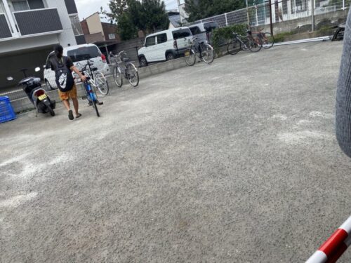 奥には広い駐輪場があります。駐車場はないので車で来る際はご注意を。 この日までの3日間のオープン特価でいつもは油そば880円辛味噌油そば980円のところ、油そば500円、辛味噌油そばは600円とお得に味わえるということもあり、着いたのはお昼のピーク時間の後でしたがそれでも並ぶ際に1時間待ちと言われました。