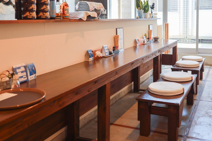 店内はナチュラルテイストで、縦に長い空間に沿って席がまっすぐに配置され、開放感があります。
