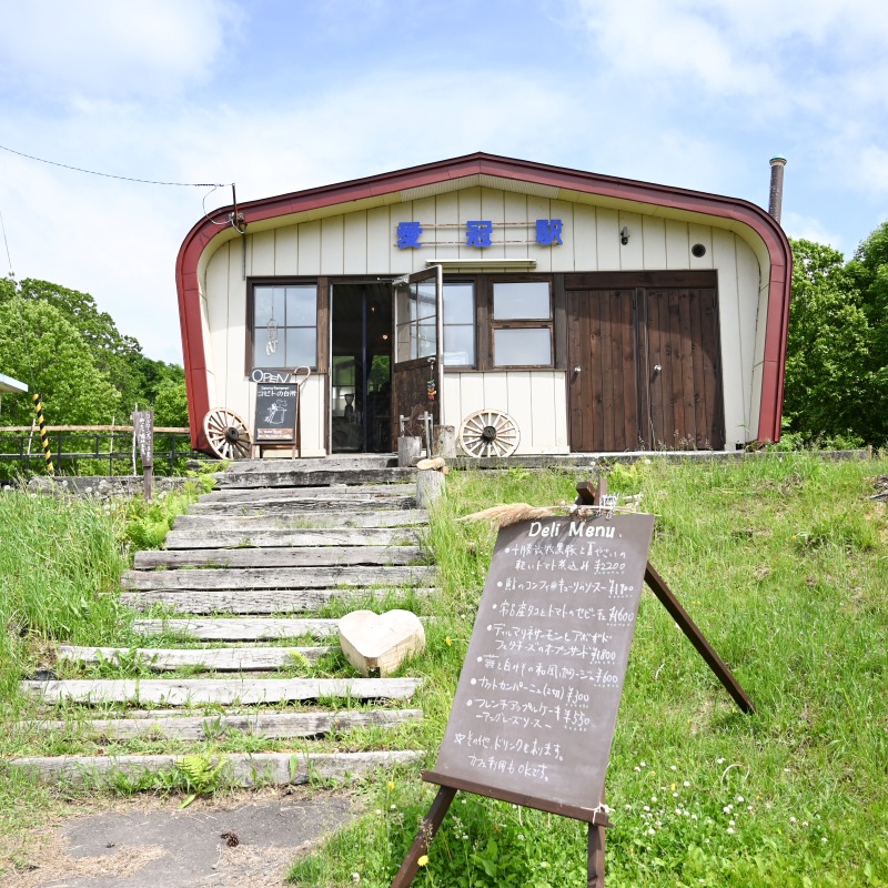旧愛冠駅舎とホームがあった面影が残る空間が生まれ変わった空間は、温かみとノスタルジーを感じさせる佇まい。お店をスタートした当初は駅の劣化が激しかったものの、お花を植えたりモニュメントを設置したりと、町の支えや持前のDIY&モノづくり精神で少しずつ今の姿に変貌を遂げました。この唯一無二の佇まいは「絵本みたいな異空間」とお客さんを楽しませています。