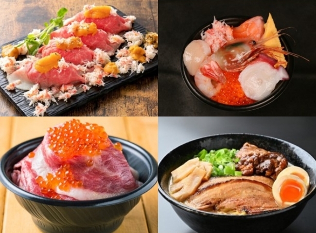 道産牛の肉寿司や、北海道朝一丼、炙り牛トロいくら丼、濃厚札幌味噌ラーメンなど、北海道ならではの味わいが一同に集結!
