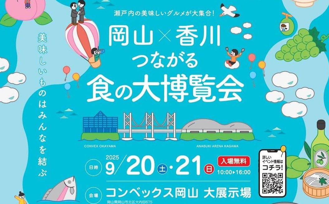 2025年9月20日(土)、21日(日)の2日間、岡山市のコンベックス岡山 大展示場を会場に、グルメイベント「岡山×香川 つながる食の大博覧会」が開催されます。