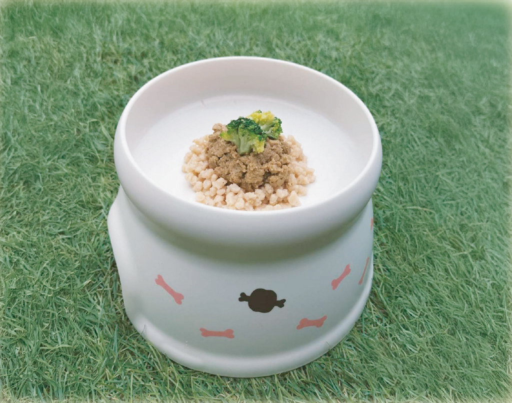 安心・安全な食材づくりで知られるNITIGAの大豆ミートを使用。ワンちゃんご飯(大豆ミート) 600円。