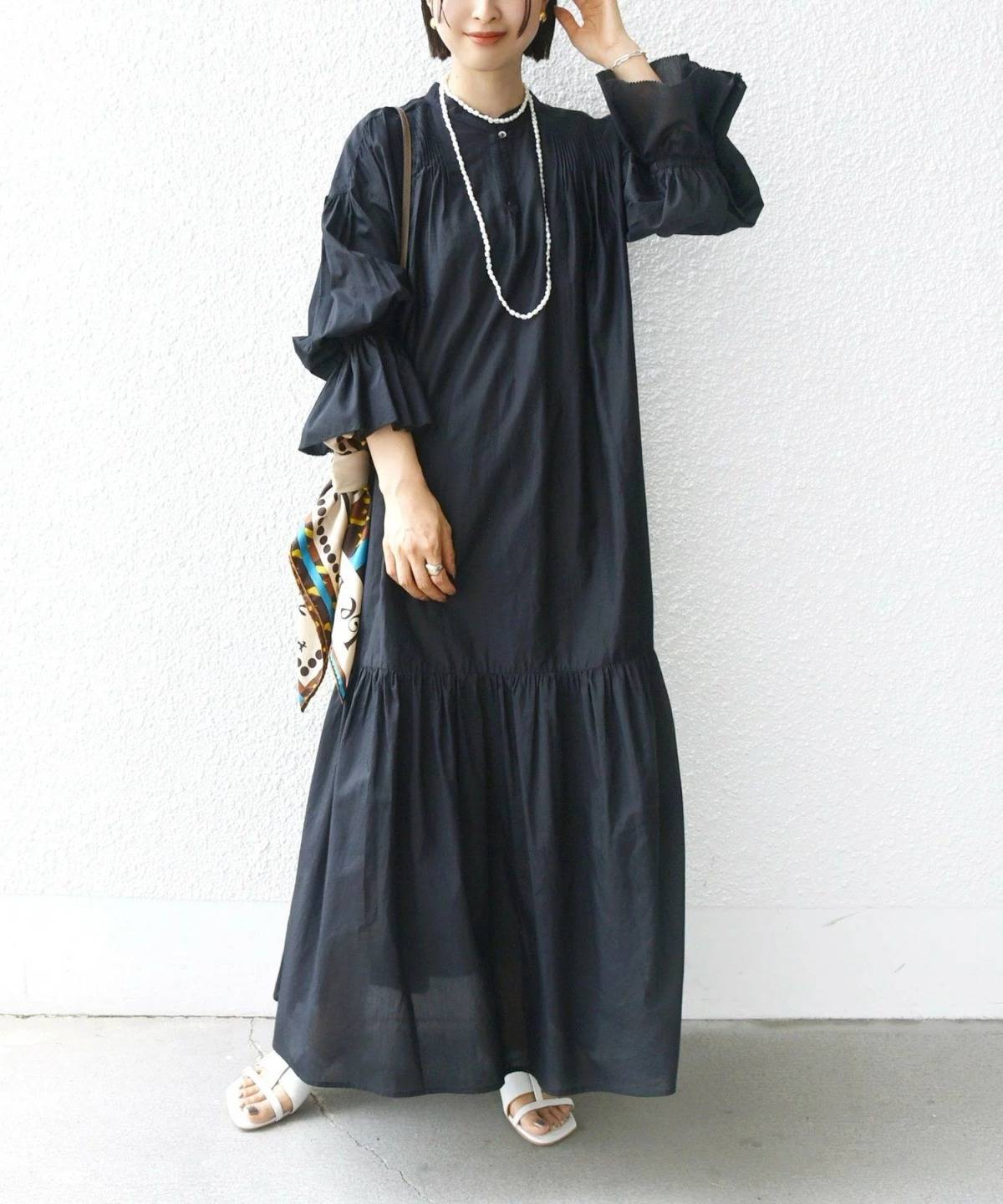 フェミニンな雰囲気のティアードワンピースは、大人女子が2025年初冬に普段使いするのに向いているアイテム♪