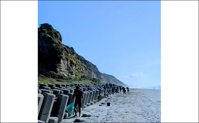 伊古部海岸の投げ釣りでシロギスとシマアジを手中【愛知】サーファーと一緒にクリーン活動も実施
