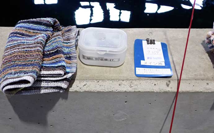 仕掛け付きの竿とエサ、タオルは貸してもらえるので手ぶらでの釣行が可能となっている。