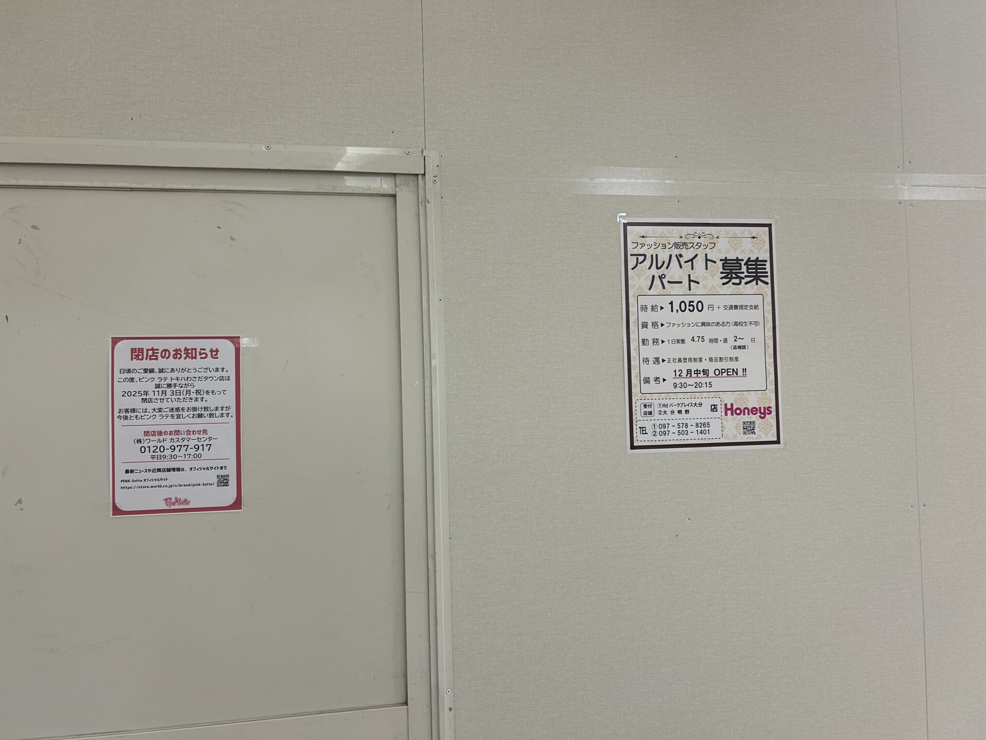 『Honeys』は、大分市内だとあけのアクロスとパークプレイス大分に店舗があります。