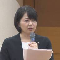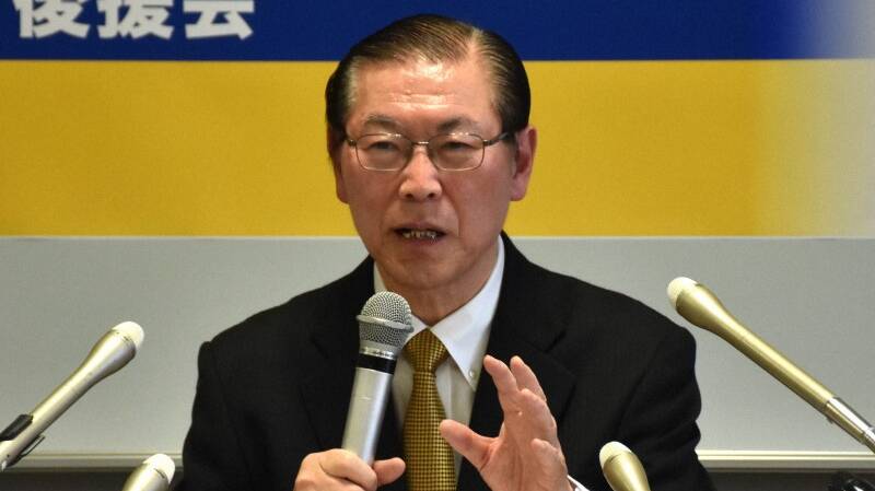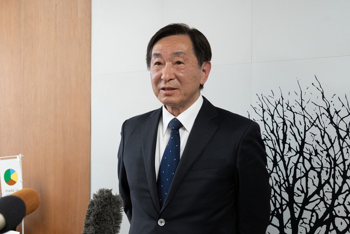 《画像:終了後、報道陣の質問に答える小菅氏》