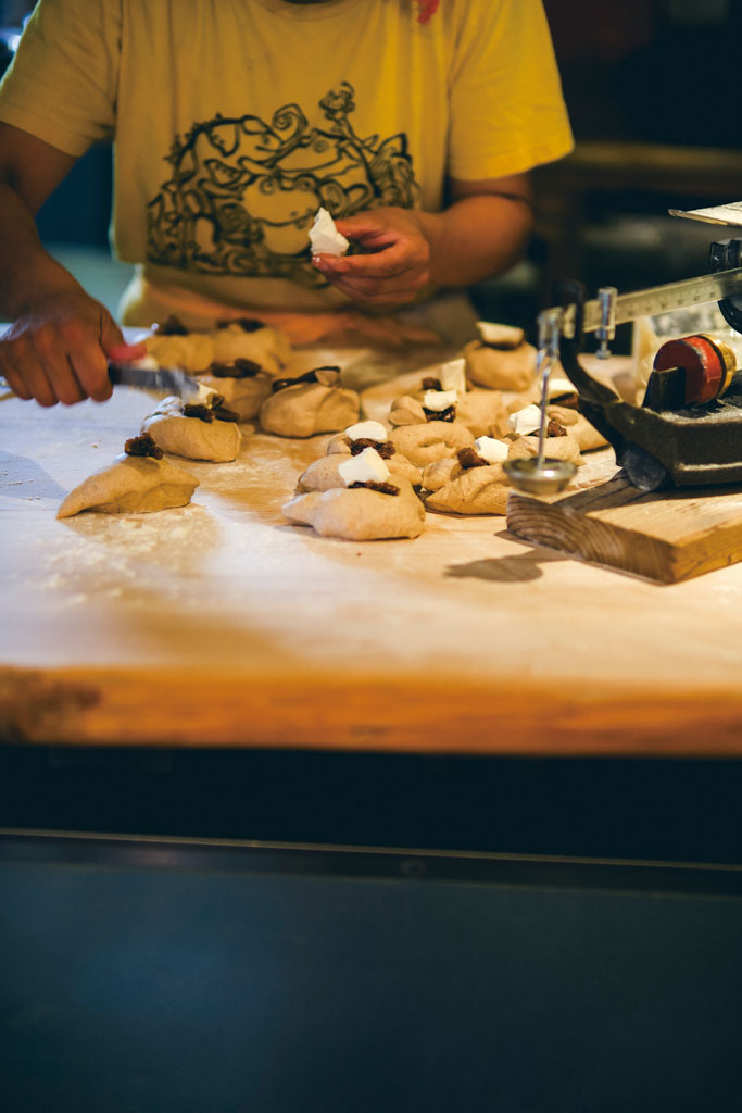 午前中は次々とパンが焼き上がる。見た目だけでなく素材選びにもこだわりあり。数種類の天然酵母を使い分け、フィリングなどもすべて手づくり。