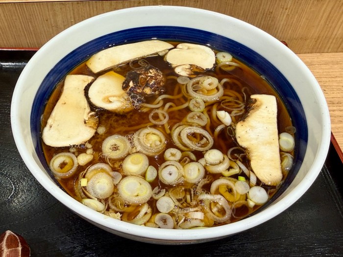 正直、激ウマという衝撃はないものの、松茸の独特な香りと食感が、いつもの立ち蕎麦をワンランク上の体験に引き上げているのは確か。麺はしっかり目で、つゆとの相性も良い。普段使いの立ち蕎麦店で気軽に季節感を味わえているという点ではナイスだろう。