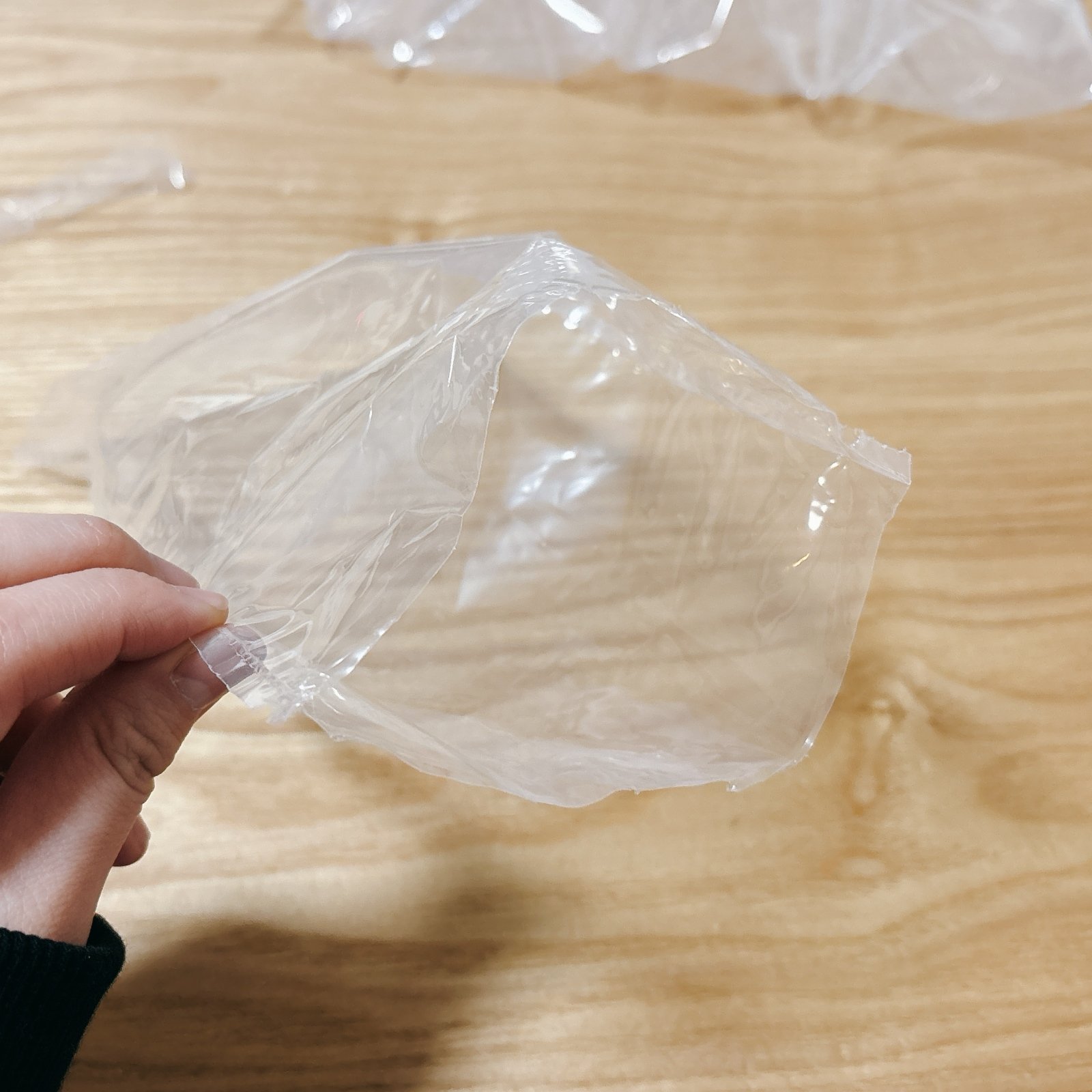 ※このアイデアは個人の工夫であり、公的機関や専門家による推奨ではありません。エアー緩衝材は梱包材として使用されたものであるため、衛生面には十分ご注意ください。手荒れや皮膚に異常がある場合は、市販の使い捨て手袋をご使用ください。