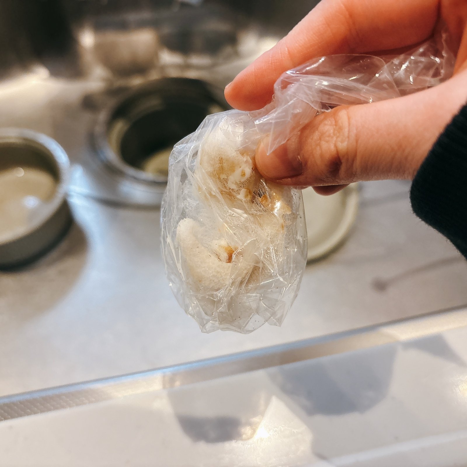 汚れたキッチンの排水口ネットを、直線手で触るのはなんとなく抵抗がありますよね。そんな排水口ネットの処分に、エアー緩衝材のプチ袋が役立ちます。