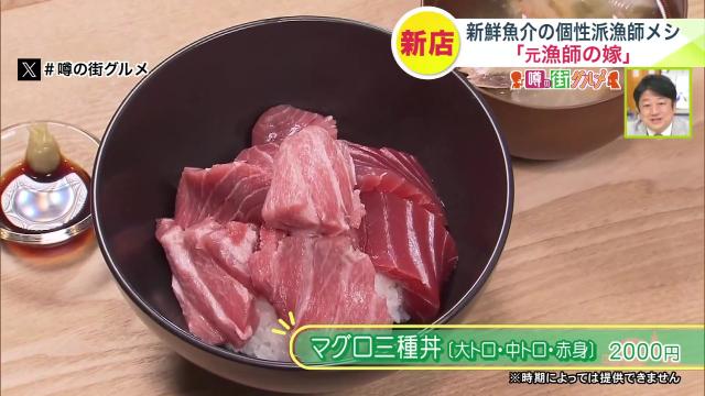 マグロの大トロ・中トロ・赤身を乗せた丼ぶりや、ズワイガニの内子を使ったパスタが味わえるんだそうですよ。