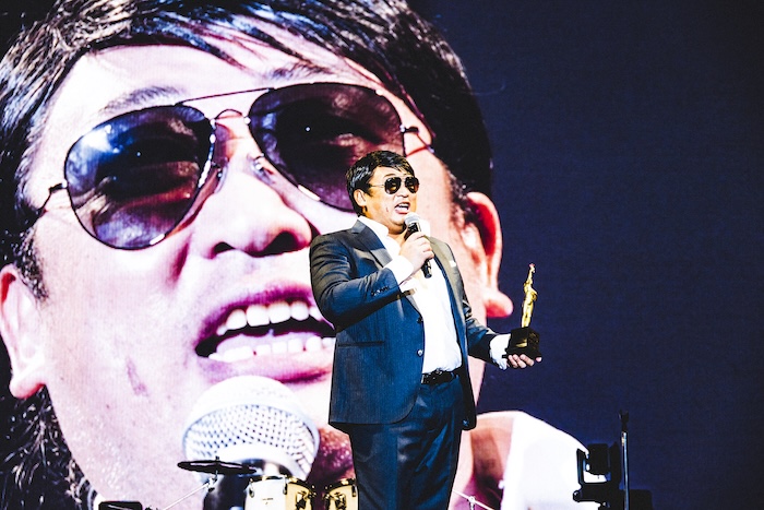 「真のアジアスターを目撃するのは!?」というナレーションが流れ、VTRが映し出されると、サングラスにトロフィーを手にしたペリー・キー(秋山竜次)がステージへと姿を見せた。何語なのか判別できない独特の発音で会場を圧倒しつつ、「オハヨウ!コンニチハ!オープニングセレモニー、キノウ細川たかし。今日アキヤマ、少しヨワイ!ダカラ私キマシタ!」と軽妙に自己紹介。さらに幕張を「マイバリー」と呼び、「マイバリー大好き!カンラクガイ!」と叫ぶと、観客は早くも笑いのピークへと達した。