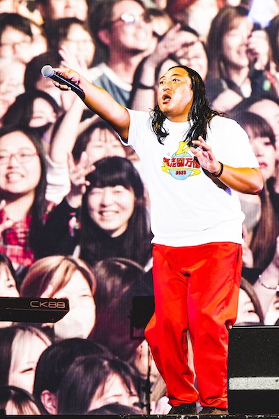 ラストは、都なのか区なのかを問い続ける『TOKAKUKA』。「都、都、都、都、区、区、区、区!」の煽りに、会場は大きな手拍子と笑いで一体となった。そしてパフォーマンスを締めくくるように一息ついた秋山は、「ただいま開会を宣言する流れに移ります。大丈夫かなこれで?それっぽい歌とかいるのかな!?」と観客に語りかけ、即興の開幕風ソングを歌い上げ、「我らが氣志團万博ーただいまより、開幕宣言を宣言いたします!」と高らかに言い放ち、堂々たる開幕を飾った。