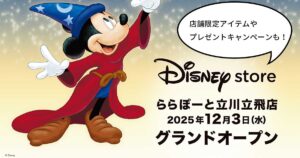 12月3日(水)にオープンする、『ディズニーストア ららぽーと立川立飛店』。