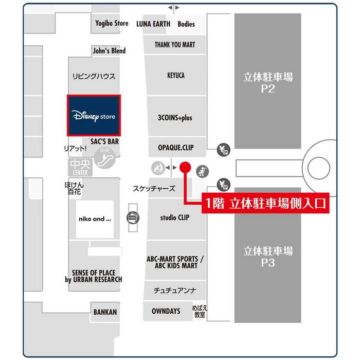 そして当日は、お店ではなくららぽーと立川立飛1階の立体駐車場側入口に行く必要があります。
